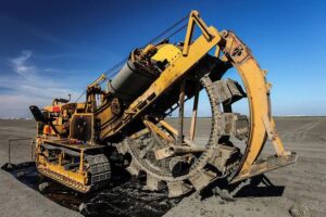 Unlike conventional excavators, this machine features a large rotating wheel lined with continuous buckets. As the wheel spins, the buckets scoop material from the earth and feed it onto conveyor systems. They’re used primarily in lignite (brown coal) mining and industrial extraction of copper, uranium, and precious metals.